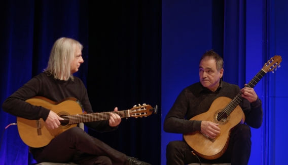 Beide sind Grenzgänger, immer auf der Suche nach Neuem- und bilden jetzt ein besonderes Gitarrenduo. „Eigentlich mussten wir nur unseren Gedanken freien Lauf lassen. Wir genießen die Vielfalt der Ideen und Strömungen, lassen alles fließen, alles ist erlaubt, es muss nur gut klingen,“ meinen die beiden Musiker. Wer sie hört, merkt schnell: das tut es!